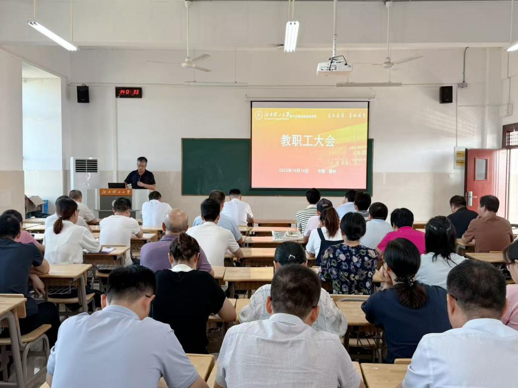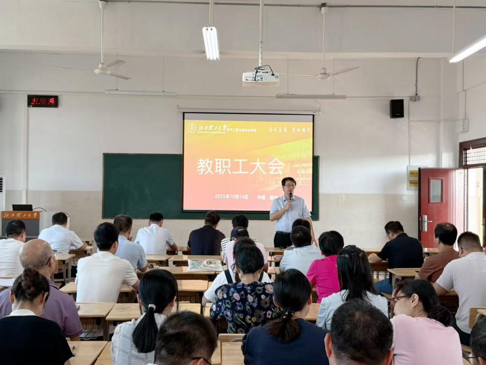 10月14日,爱游戏app(中国)官方网站在智汇楼501召开教职工大会,学院领导班子及全体教职工参加会议,会议由院长刘细平主持。