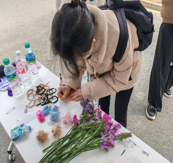 幸运抽奖·惊喜连连环节则将活动的气氛推向了高潮。完成任意一项活动的同学都有机会参与“幸运转盘”抽奖,赢取精美奖品。转盘上的每一个格子都藏着一份惊喜,发卡、发圈、玩偶钥匙扣等精美礼品让女生们爱不释手。她们满心欢喜地挑选着自己喜欢的奖品,现场欢声笑语此起彼伏。